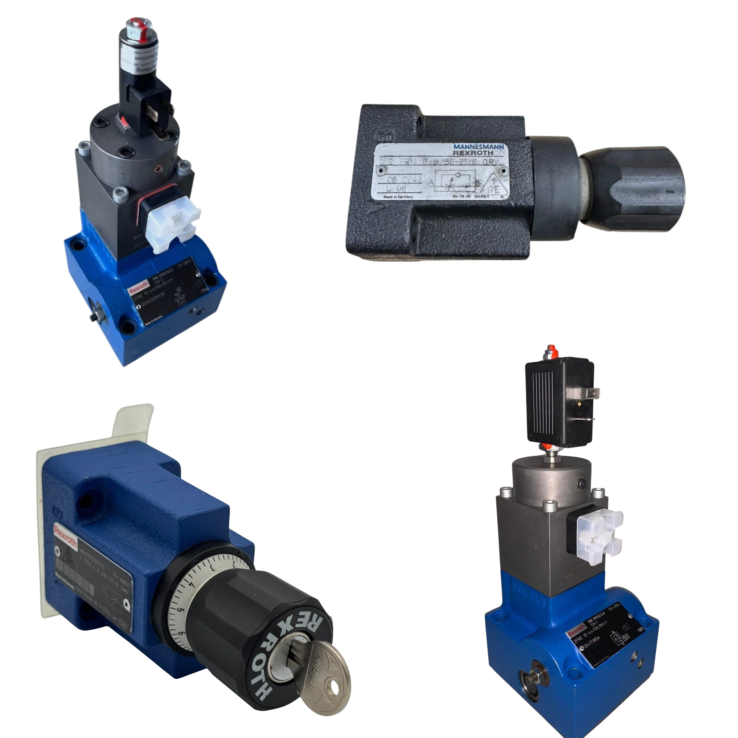 The Bosch Rexroth 2F Flow Control Valves are a series of 2-way, pressure-compensated flow control valves designed to maintain a consistent volumetric flow rate regardless of pressure fluctuations. Their primary function is to accurately regulate the speed of hydraulic actuators by controlling the flow into or out of them. The valve works by incorporating a flow metering orifice and a pressure compensator; the compensator spool adjusts its position automatically to keep the pressure drop across the orifice constant, which ensures the flow rate remains stable even as the system load changes. The series includes mechanically actuated versions, like the 2FRM, and electrically actuated proportional versions, like the 2FRE, which allow the flow rate to be continuously and remotely adjusted via an electrical signal. These valves are typically used in subplate mounting configurations and can be fitted with an optional rectifier sandwich plate to enable flow control in both directions.
