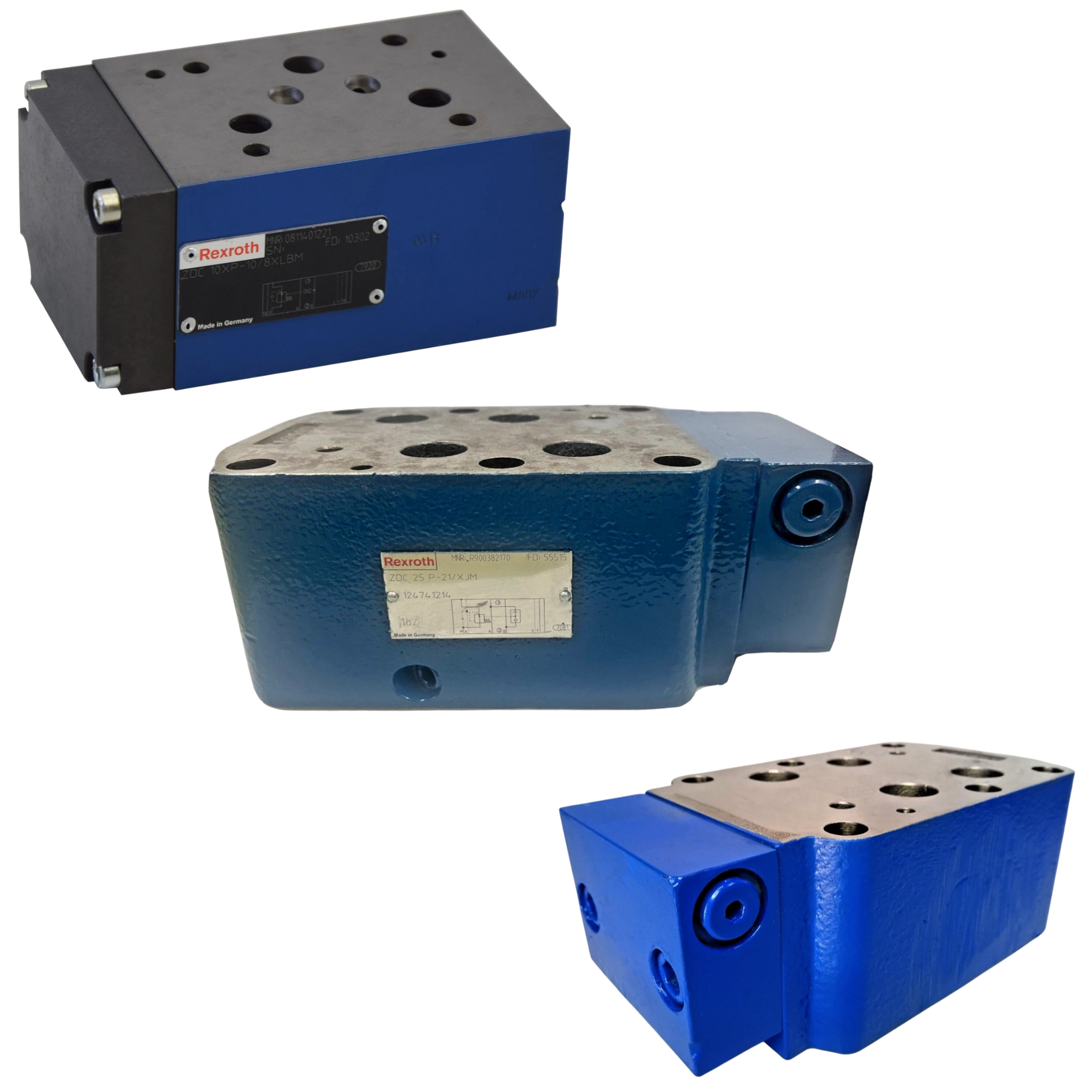 The Bosch Rexroth ZDC Pressure Compensators are direct operated supply pressure compensator valves designed as sandwich plate valves for use in stackable hydraulic systems. They work by using an internal shuttle valve to sense the load pressure and, in a control loop with a proportional directional valve, adjust the inlet pressure to maintain a constant pressure drop across the directional valve's control orifice. This control mechanism allows for load compensation in the main flow channels (P to A or P to B). The primary function is to enable precise and load-independent flow control when used in conjunction with a proportional directional valve, ensuring the actuator speed remains constant despite changing load pressures. They are available as 2-way ("P") or 3-way ("PT") versions, handling pressures up to 350 bar.