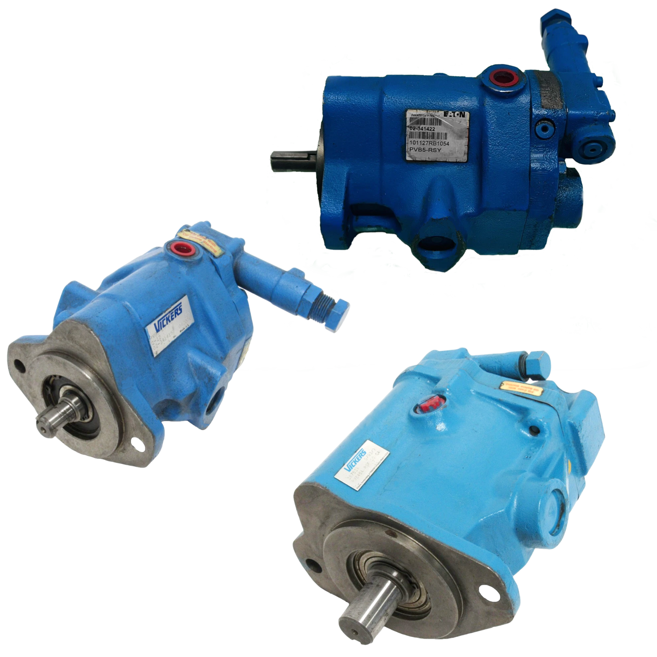 Vickers PVB Piston Pumps are reliable, high-performance, variable-displacement axial piston pumps widely used in industrial and mobile hydraulic systems. They operate by converting rotary input motion into reciprocating motion using a rotating swash plate that drives pistons within a cylinder barrel. This mechanism draws fluid into the cylinder chamber on the intake stroke and forces pressurized fluid out during the discharge stroke. A key feature is the variable-displacement capability, allowing the pump's output flow to be precisely adjusted based on system pressure and demand by changing the swash plate angle. These functions enable efficient, controlled power transmission for applications requiring flexible pressure and flow rates, such as machine tools, injection molding, and construction equipment.